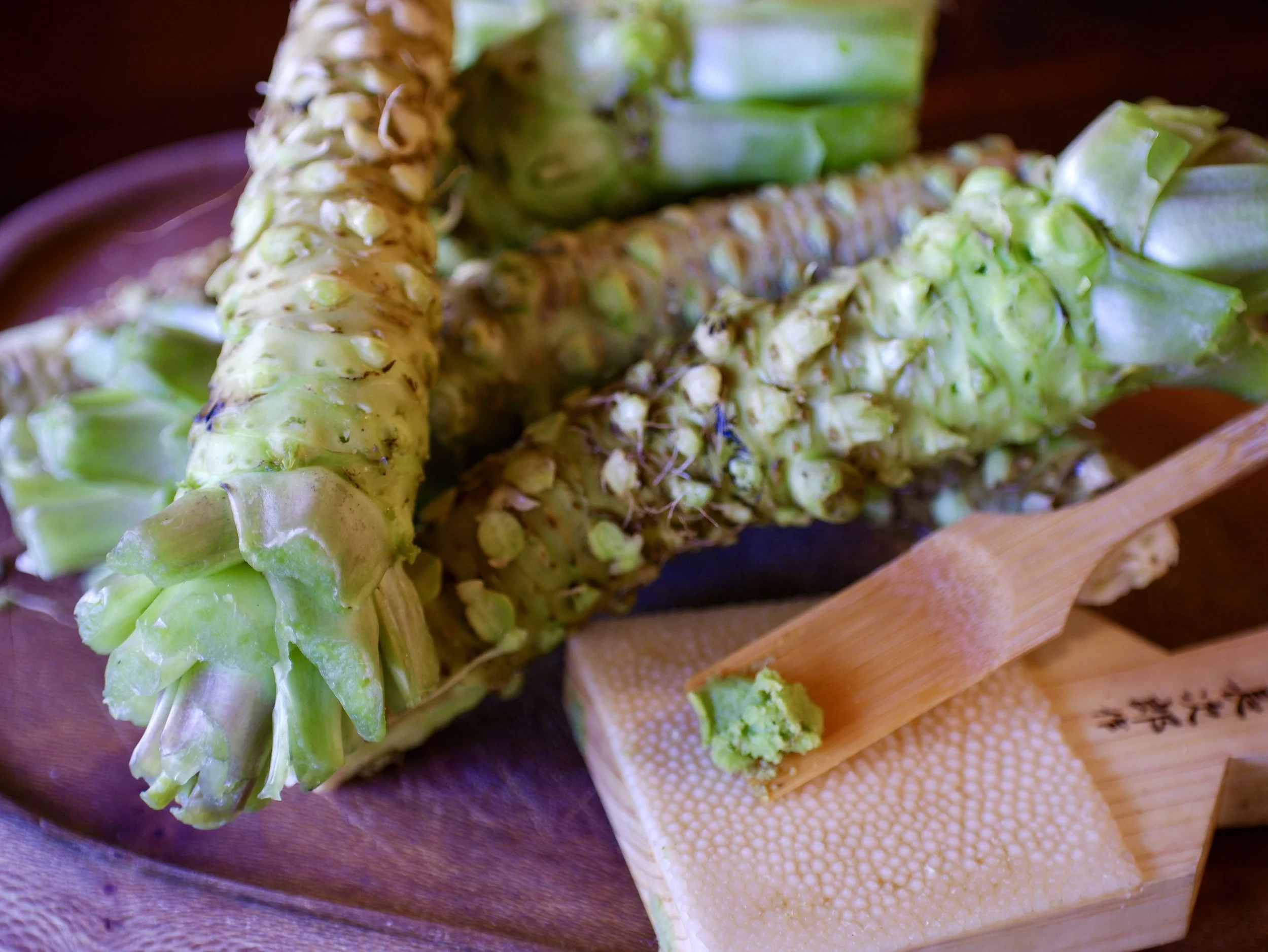 When you go out to all-you-can-eat sushi (or most low-to-mid-priced sushi restaurants, for that matter) you are almost certainly not getting real, fresh wasabi served to you. Instead, you are getting processed horseradish mixed with mustard and green food coloring. Why is this so? Well, for one, true wasabi (Wasabia japonica) is crazy expensive. In fact, per pound it is the most expensive ingredient in our kitchen. This is because wasabi is notoriously difficult to cultivate, requiring specific growing conditions. It thrives in cool, shaded environments with pristine, mineral-rich water flowing over its roots. These conditions are rare, and even with them present, wasabi needs to be paid meticulous attention throughout the growing process.